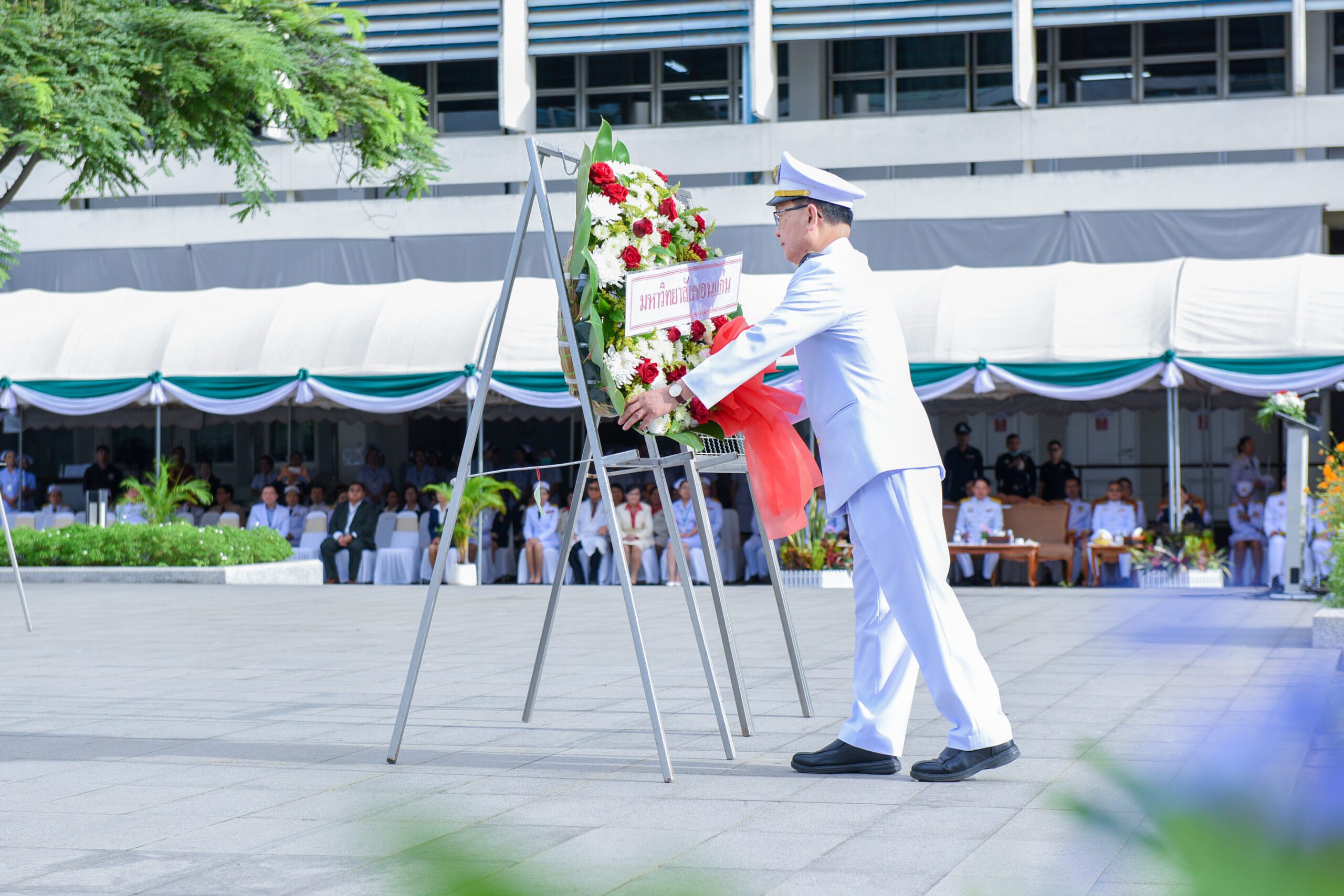 วันที่ 24 กันยายน 2568 รศ.นพ.ชาญชัย พานทองวิริยะกุล อธิการบดีมหาวิทยาลัยขอนแก่น พร้อมด้วย นายชุมพร พารา ผู้อำนวยการกองสื่อสารองค์กร และบุคลากรมหาวิทยาลัยขอนแก่น ร่วมในพิธีถวายสักการะ เพื่อน้อมรำลึกในพระมหากรุณาธิคุณ และสดุดีพระเกียรติคุณ สมเด็จพระมหิตลาธิเบศร อดุลยเดชวิกรมพระบรมราชชนก น้อมรำลึก “พระบิดาแห่งการแพทย์แผนปัจจุบันของไทย” เนื่องใน “วันมหิดล” ประจำปี 2568 โดยมี นายไกรสร กองฉลาด ผู้ว่าราชการจังหวัดขอนแก่น เป็นประธานในพิธี ณ เบื้องหน้าพระบรมราชานุสาวรีย์ฯ หน้าโรงพยาบาลศรีนครินทร์ คณะแพทยศาสตร์ มหาวิทยาลัยขอนแก่น