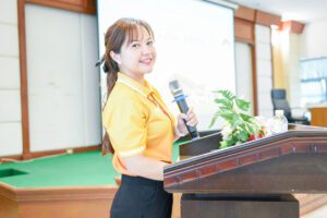 ช่วงบ่ายเวลา 13.00 น. คณะผู้เข้าศึกษาดูงานรับชมวีดิทัศน์แนะนำมหาวิทยาลัยฯ จากนั้นทีมวิทยากรสำนักบริหารและพัฒนาวิชาการ ได้แก่ นางสาวหทัยรัตน์ บุณยรัตพันธุ์ และนางสาวนวรัตน์ วงศ์คำจันทร์ บรรยายหัวข้อ “ระบบการรับเข้าศึกษาต่อของมหาวิทยาลัยขอนแก่น” โดยครอบคลุมข้อมูลรอบการคัดเลือก แนวทางเตรียมความพร้อมของผู้สมัคร และบริการสนับสนุนการเรียนรู้ในมิติวิชาการและกิจการนักศึกษา