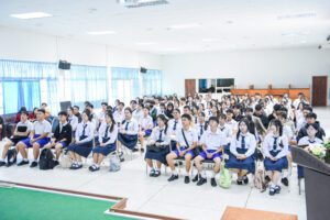 ถัดมาเป็นกิจกรรมแลกเปลี่ยนเรียนรู้ “รับน้องสร้างสรรค์” จัดโดยองค์การนักศึกษามหาวิทยาลัยขอนแก่น นำโดยนายสรวิชญ์ ตั้งภักดี นายกองค์การนักศึกษา พร้อมคณะทำงาน ถ่ายทอดประสบการณ์ชีวิตนักศึกษา กิจกรรมพัฒนาทักษะนอกหลักสูตร และเครือข่ายการแนะแนว เพื่อเสริมสร้างแรงบันดาลใจและการตัดสินใจศึกษาต่ออย่างมีข้อมูลเชิงประจักษ์