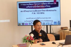 ล่าสุดจึงได้จัด “โครงการพัฒนาเครือข่ายนักจัดรายการวิทยุของสถานีวิทยุกระจายเสียงมหาวิทยาลัยขอนแก่น ประจำปีงบประมาณ พ.ศ. 2569” เพื่อเสริมสร้างความรู้ ทักษะ และประสบการณ์ให้แก่ นักจัดรายการ พัฒนาคุณภาพการจัดรายการให้มีมาตรฐาน “กิจกรรมที่ 1” ในวันที่ 22 มกราคม 2569 การศึกษาดูงาน การะบวนการผลิตรายการวิทยุโทรทัศน์ ที่ส่วนบริหารกิจการโทรทัศน์ ภาคอีสาน จังหวัดขอนแก่น สำนักงานประชาสัมพันธ์ ที่ 1 “กิจกรรมที่ 2” ในระหว่างวันที่ 23-24 มกราคม 2569 การอบรมสัมมนาเครือข่ายนักจัดรายการวิทยุ หัวข้อ การผลิตรายการวิทยุให้น่าสนใจในยุคปัจจุบัน ณ บ้านผาสุข อำเภอภูผาม่าน จังหวัดขอนแก่น โดยการบรรยาย “วิทยุยุคใหม่กับการเปลี่ยนแปลงของสื่อ” “Content Creation เนื้อหาที่ปังต้องมีอะไร?” และ “ทักษะการพูดและการดำเนินรายการ Engagement & Interaction ทำอย่างไรให้ผู้ฟังมีส่วนร่วม” โดย คุณปภินพิทย์ พัวโสพิศ ผู้อำนวยการส่วนบริหารกิจการโทรทัศน์ ภาคอีสาน จังหวัดขอนแก่น สำนักงานประชาสัมพันธ์ที่ 1