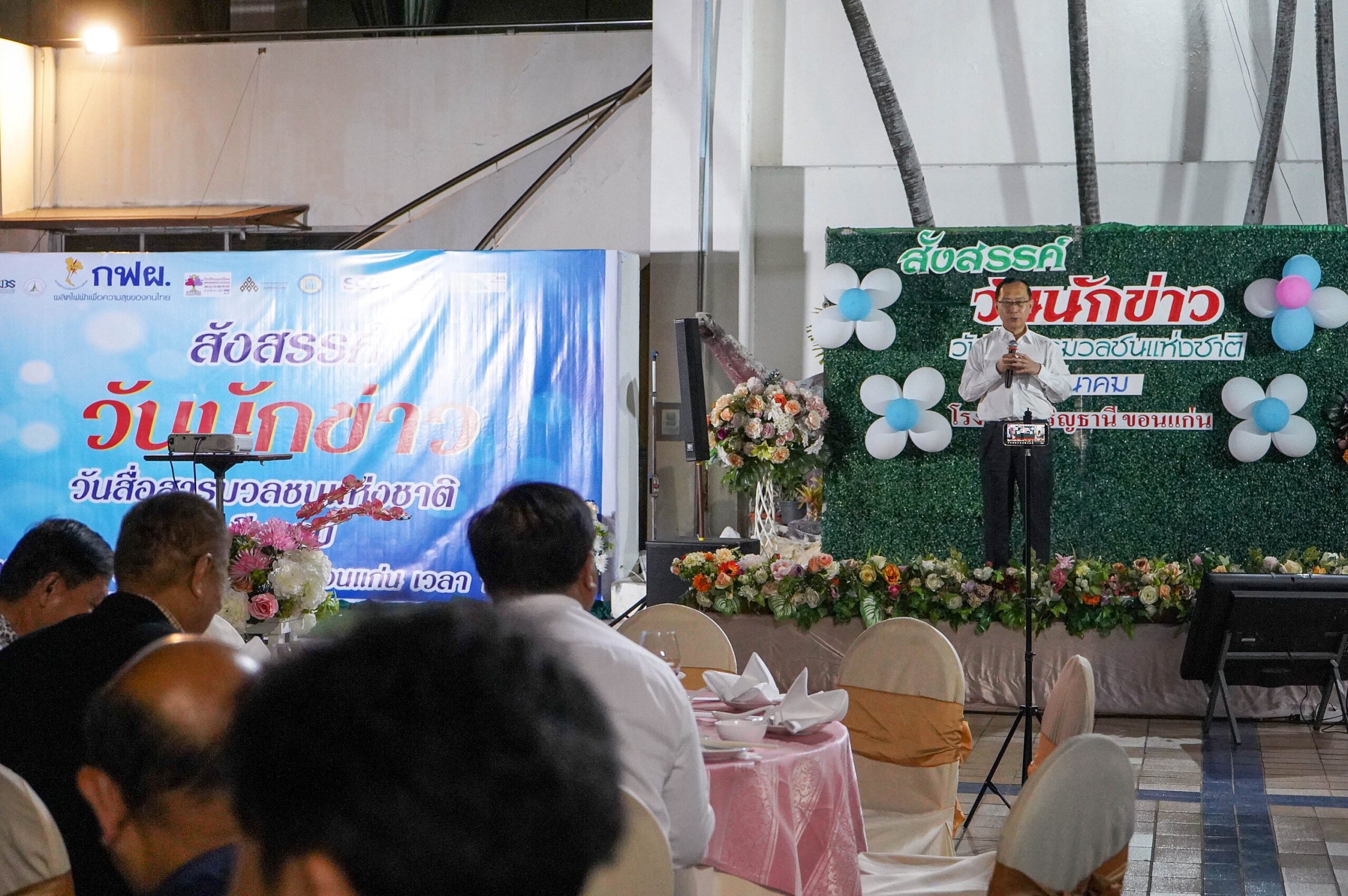 ภายในพิธี ได้รับเกียรติจาก พลโท ดร.สมชาติ แน่นอุดร ประธานคณะกรรมการสถานศึกษาขั้นพื้นฐานโรงเรียนขอนแก่นวิทยายน นายทหารราชองครักษ์พิเศษ เป็นประธานในพิธี กล่าวเปิดงาน พร้อมเน้นย้ำถึงบทบาทสำคัญของสื่อมวลชนในการนำเสนอข้อมูลข่าวสารที่ถูกต้อง รอบด้าน และเป็นประโยชน์ต่อสังคม ตลอดจนชื่นชมสื่อมวลชนที่มีส่วนสำคัญในการพัฒนาประเทศ โดยมี นายสุรชัย อักฌราศิวะโรจน์ ผู้เริ่มก่อการสมาคมสื่อมวลชนจังหวัดขอนแก่น ในฐานะตัวแทนสื่อมวลชนจังหวัดขอนแก่น กล่าวรายงานถึงวัตถุประสงค์ของการจัดงานในปีนี้